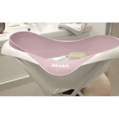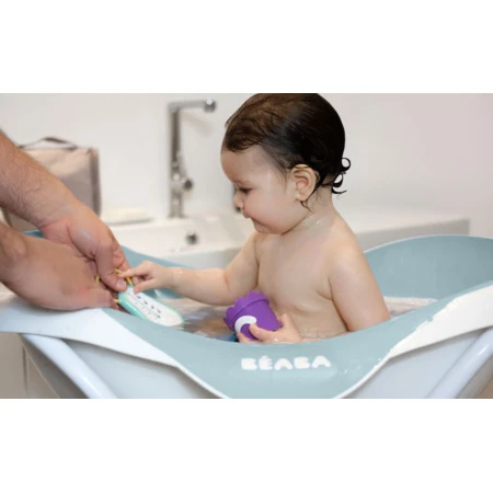 La baignoire Camélé'o Beaba a un revêtement antidérapant et des formes douces pour le confort de bébé.