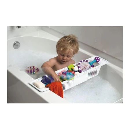 Corbeille détachable Baby Dan pour jouets de bain- Range les jouets et produits de bain- Taille ajustable qui s’adape à presque toutes les baignoires- Le panier peut egalement être utilisé comme protection face à un robinet chaud