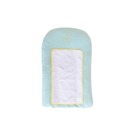 Ce matelas à langer est soyeux avec sa housse en mousseline de coton avec éponge étanche et détachable.