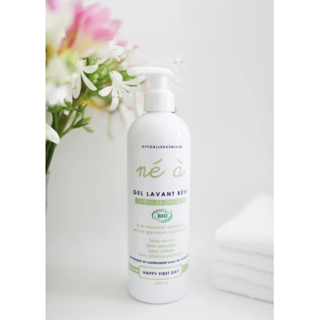 Le gel lavant pour le corps et les cheveux de bébé de Né à a été développé en partenariat avec les maternités pour nettoyer la peau de bébé sans agresser le film lipidique. Utillisé au quotidien, ce gel apaise et hydrate la peau de bébé.