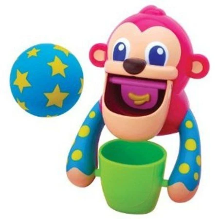 Le singe glouton Dès 12 mois Se fixe sur la baignoire à l’aide des ventouses. Bébé devra faire preuve d’agilité pour viser juste grâce à son poisson aspergeur et sera récompensé par le véritable son de l’animal… Attention : à n’utiliser qu’en eau où l’enfant a pied et sous surveillance d’un adulte