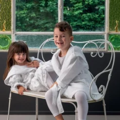 Optez pour le peignoir pour enfant Imagine en nid d’abeille, entièrement en coton biologique. Élément complémentaire de la parure Imagine, ce linge de bain bio et blanc s’orne de deux grandes oreilles sur sa capuche qui amuseront beaucoup votre enfant. Une finition passepoil de couleur nuage par le bas des manches et le haut des poches de ce linge de bain pour enfant et s’assortit à merveille avec la fine broderie et les oreilles 3D de lapin qui agrémentent la capuche.