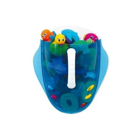 Idéal et pratique pour ranger et sécher les jouets de bain ! Le range-jouets de bain se fixe au mur, il est muni d’une poignée et se détache pour venir ramasser et ranger tous les jouets ! Les ouvertures permettent à l’eau de s’évacuer et laisser sécher les jouets. Pour prolonger les joies du bain et faire du rangement un nouveau jeu.