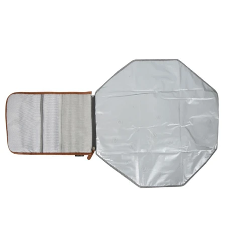 Ce petit set contient un matelas à langer avec doublure étanche en PEVA, deux poches de rangement et une anse amovible.