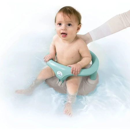 Ce siège de bain en forme d’anneau pour garder le bébé assis en toute confiance dans la baignoire.Le siège se fixe grâce aux ventouses et à l’anneau qui s’ouvre pour placer le bébé.Conçu pour les bébés à partir de 6 mois.Dimensions du siège : 32 x 22 x 35,8 cm