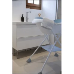 Très pratique grâce à ses 2 portes serviettes latéraux, il est extrêmement stable et sécurisé grâce à ses 4 patins antidérapants et son système de verrouillage compatible avec la baignoire et le plan à langer.